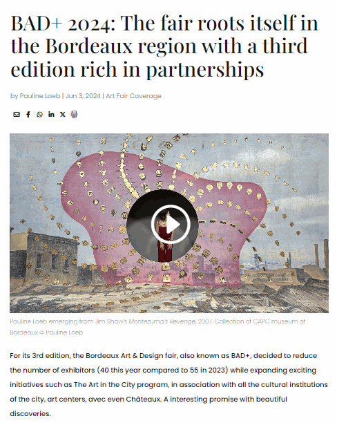 29 May - 2 Jun 2024Mia Karlova Galerie at BAD+ Bordeaux 2024 with Korean artist Moon Seop Seo, wooden sculptures by Valery Pchelin, functional sculptures by gallery core designers Olga Engel and Vadim Kibardin and Sho Ota, walnut collection by Spanish designer Jordi Sarrate. clay mural by Ukrainian sculptor Andriy Voznicki and vessels by Tokyo based studio YOCHIYA.Read more -