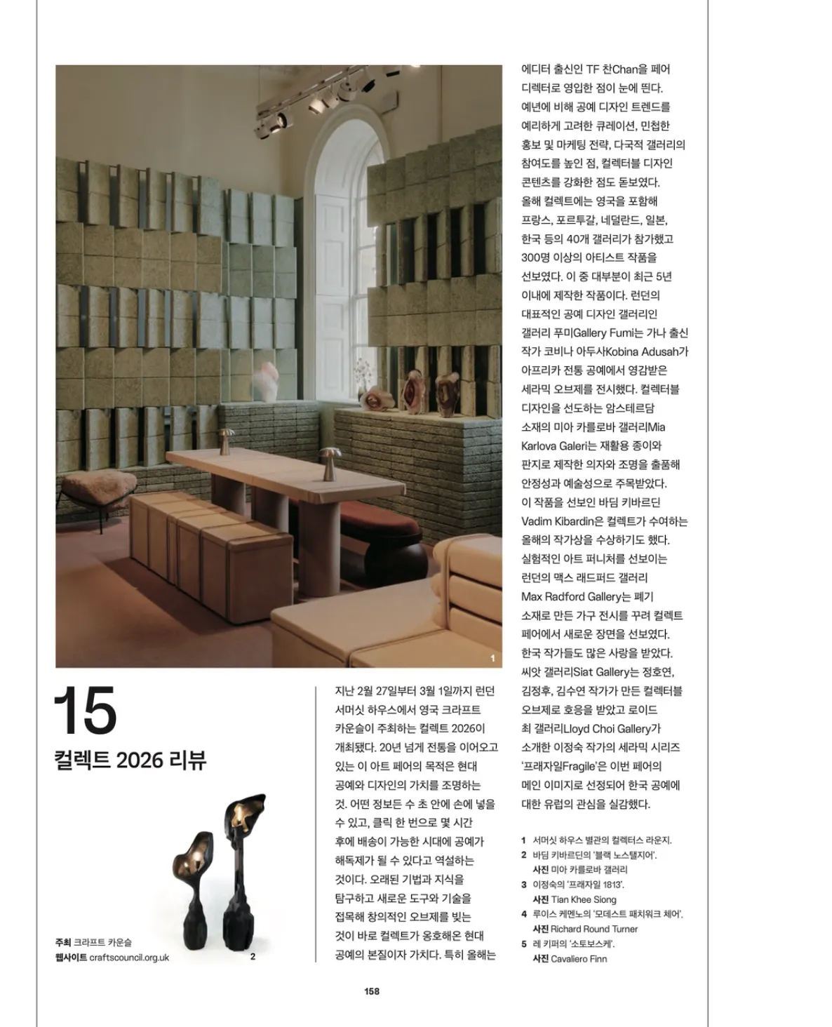 From February 27 to March 1, Collect 2026, an international craft fair organized by the Crafts Council, was held at Somerset House in London. With over 20 years of tradition, the fair aims to expand the value of contemporary craft and design. In an era where objects can be purchased online with a few clicks and delivered quickly, the fair plays a role in demonstrating how craft can serve as an antidote.